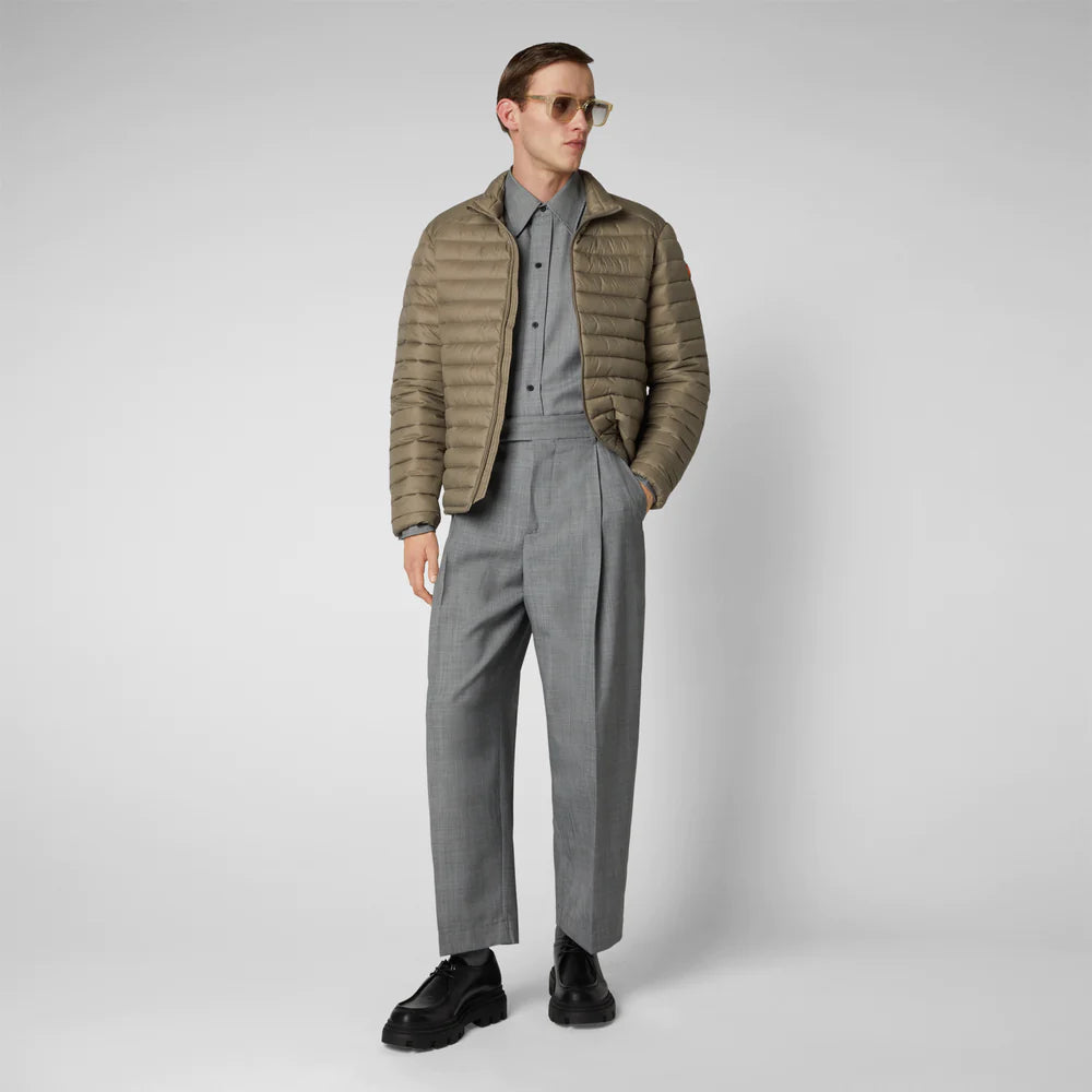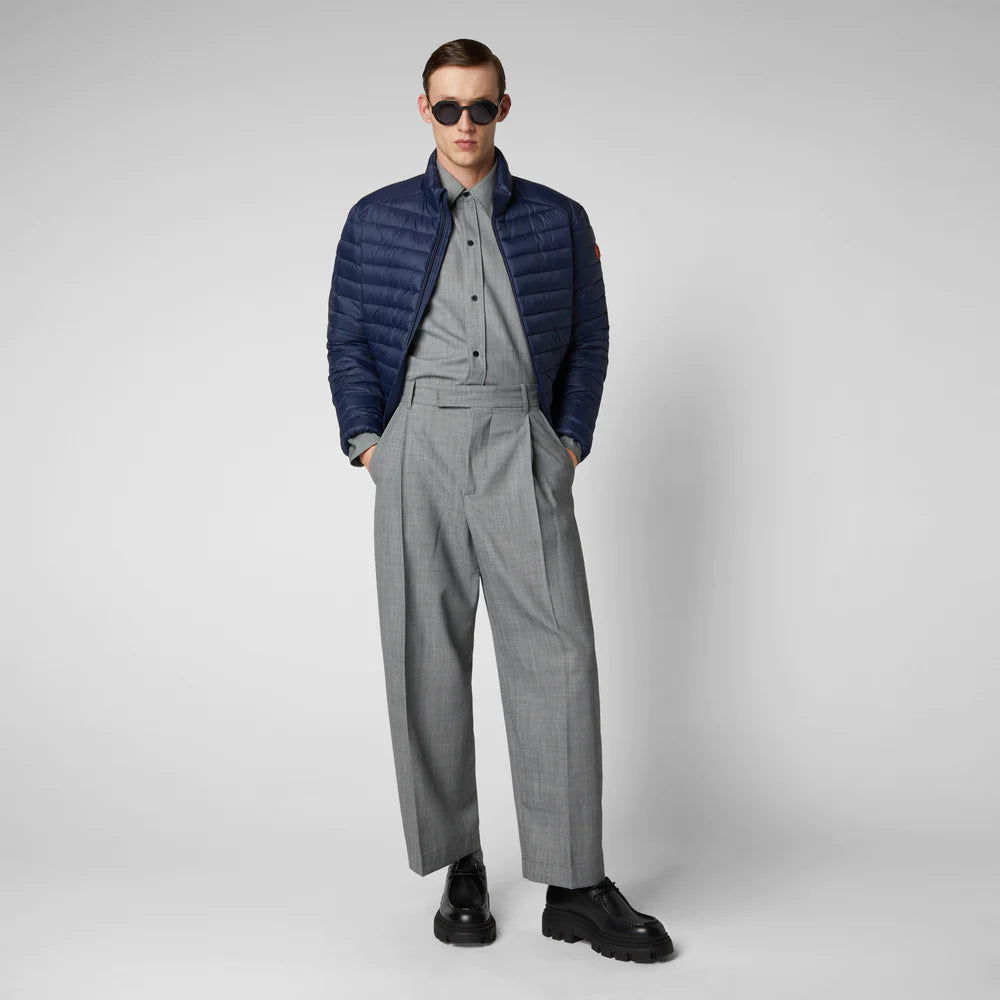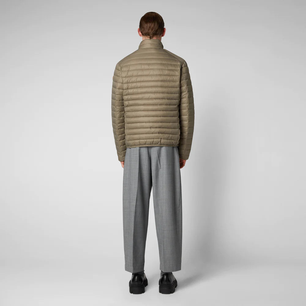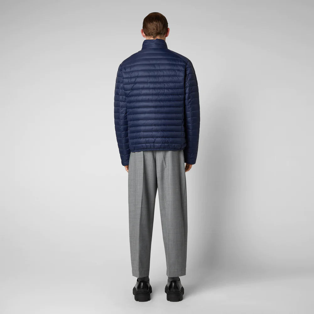 Piumino animal-free realizzato in nylon leggero e idrorepellente. Tagliato con colletto alla coreana, il modello ha tasche laterali chiuse da zip invisibili, tirazip personalizzati aranacioni e il logo tondo in gomma sulla manica sinistra.