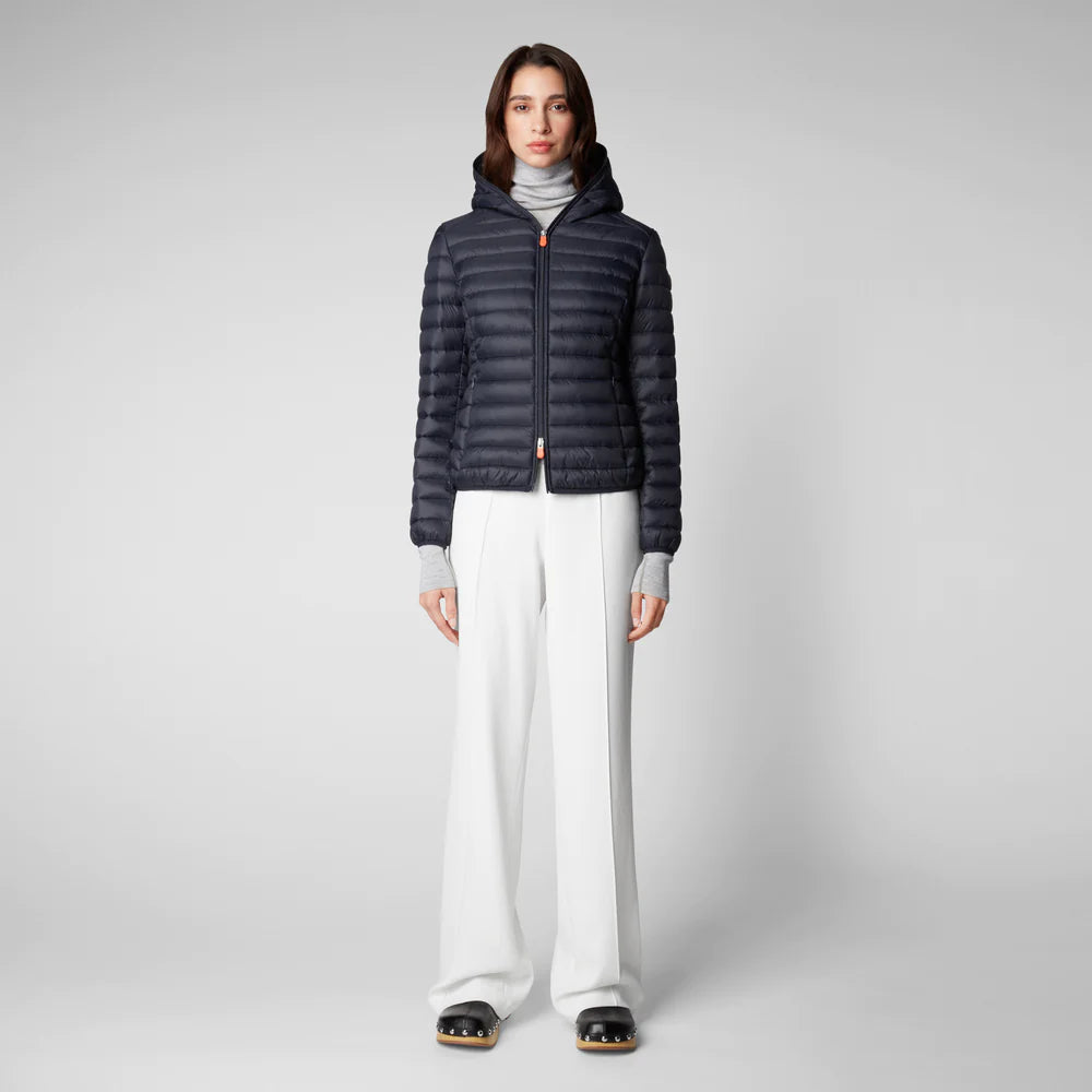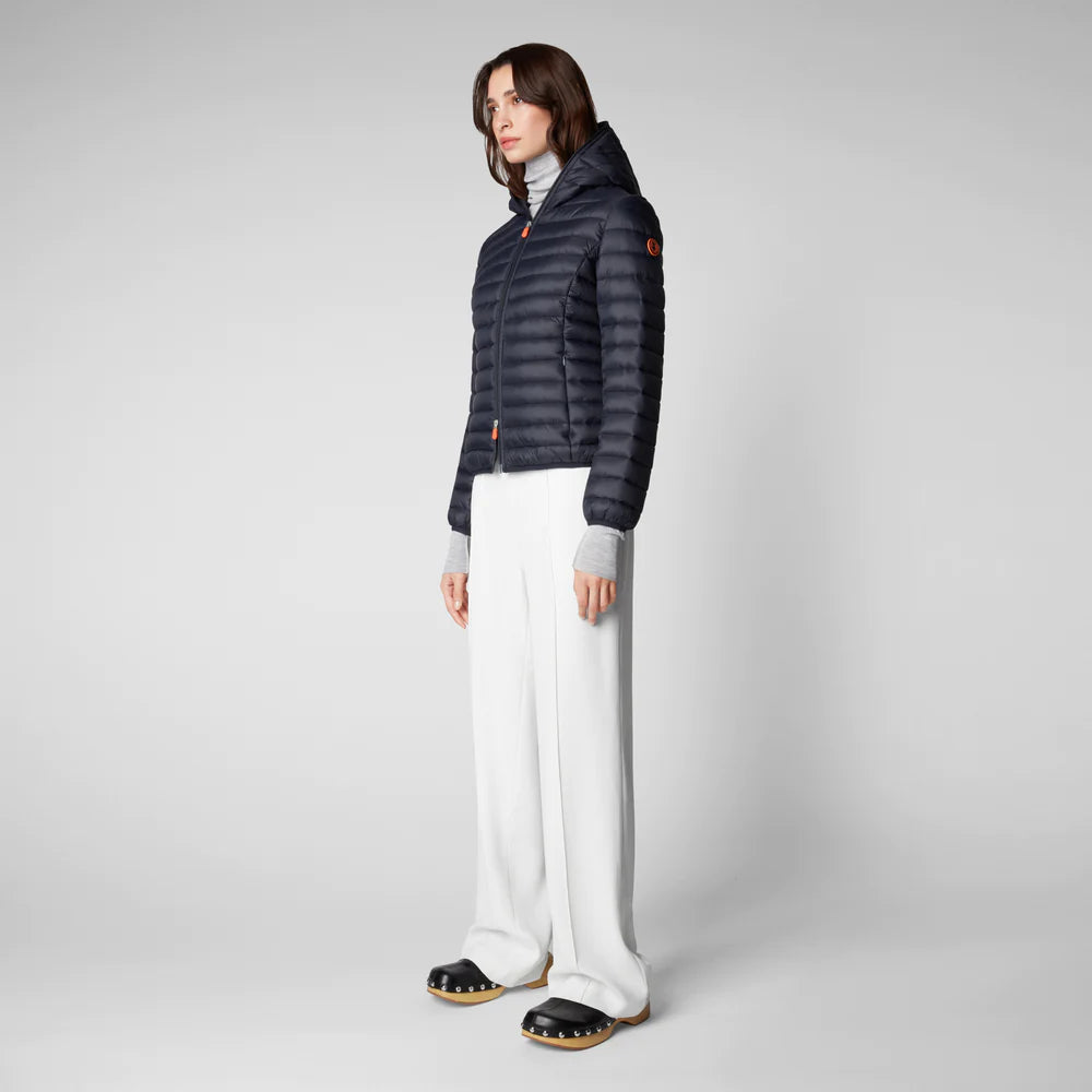 Piumino imbottito con PLUMTECH®, con cappuccio, zip con doppio cursore, tasche con zip invisibili sui fianchi.