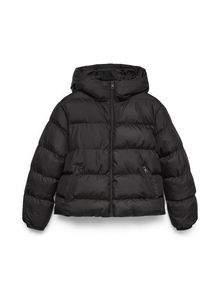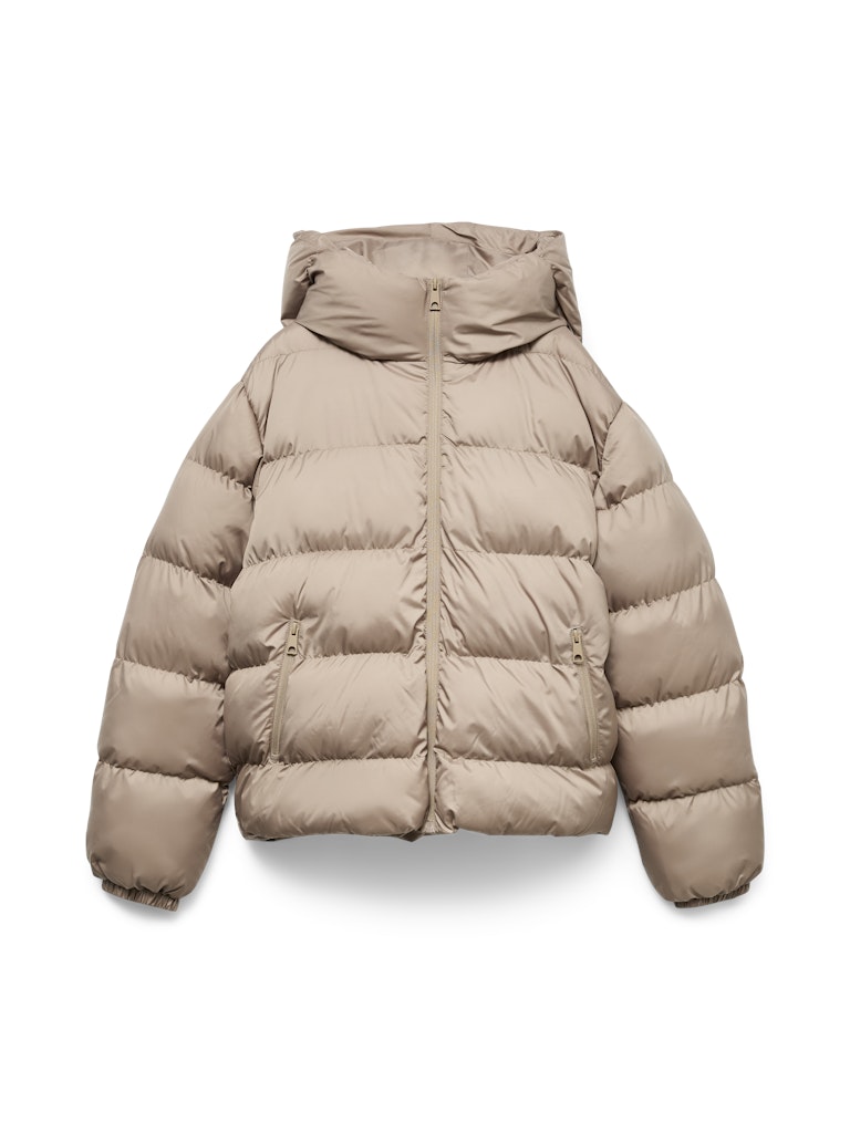 Piumino corto con cappuccio firmato VEROMODA, perfetto per affrontare le giornate più fredde con stile e praticità.