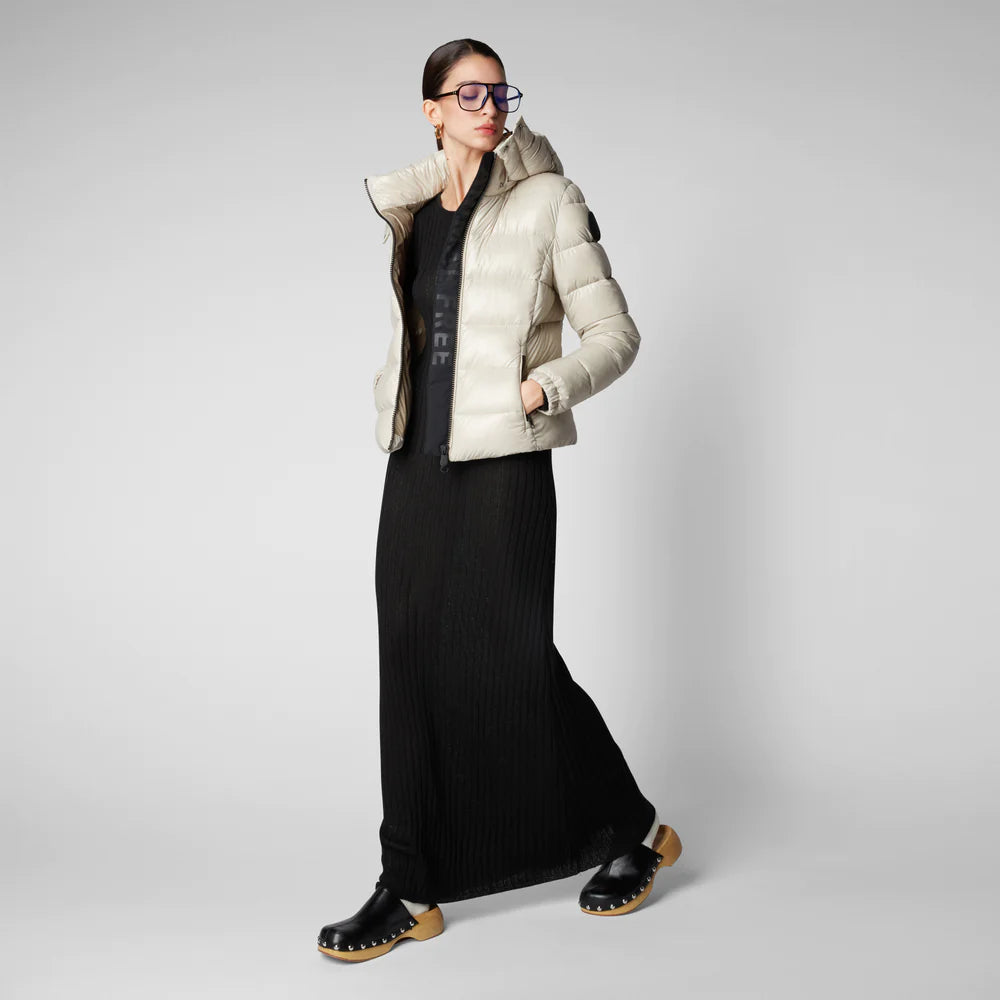 Giacca con imbottitura PLUMTECH® senza animali. Dotata di cappuccio removibile, presenta collo alto isolante e zip frontale, il tutto avvolto da un guscio tecnico dalla finitura lucida per un effetto accattivante.
