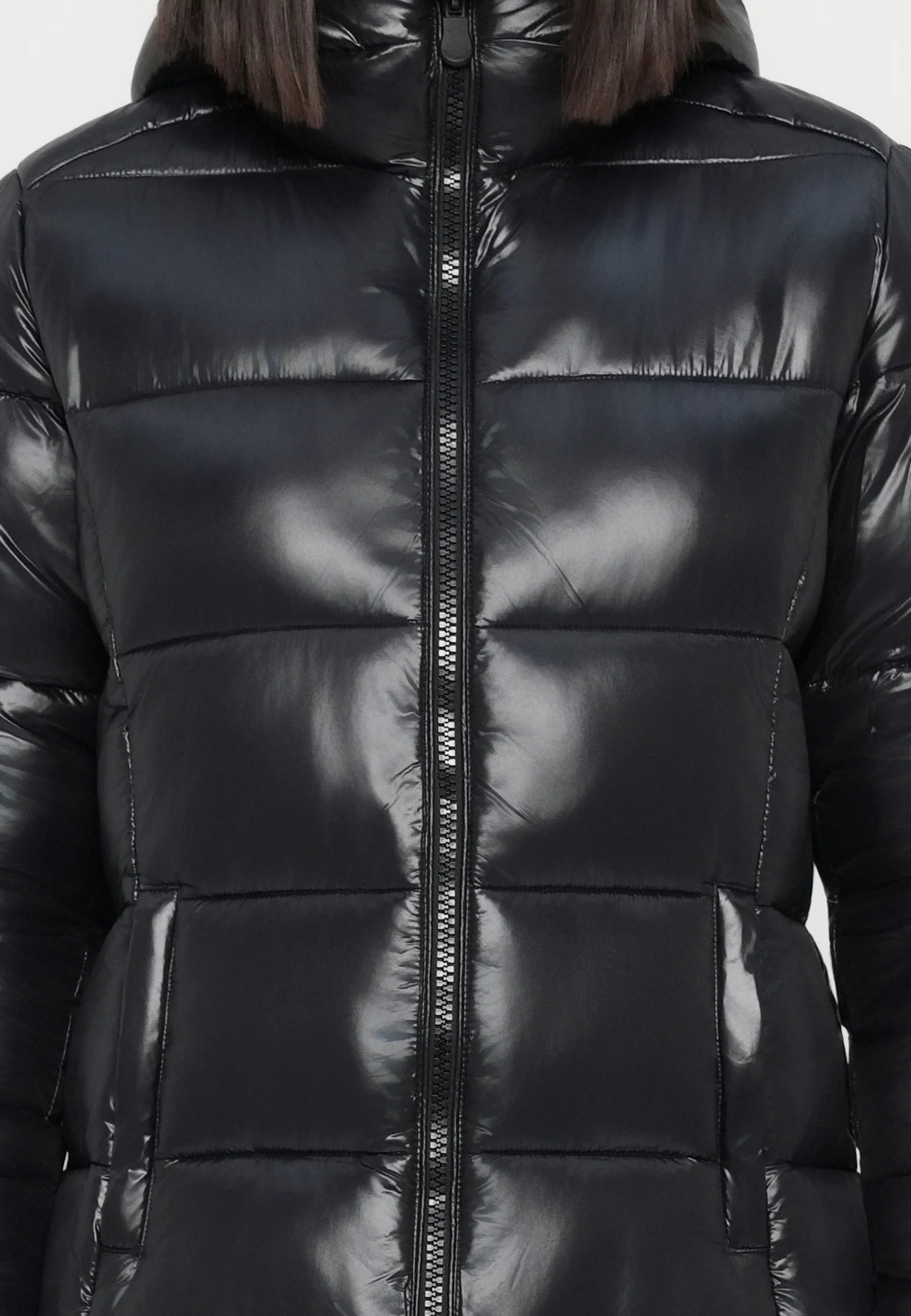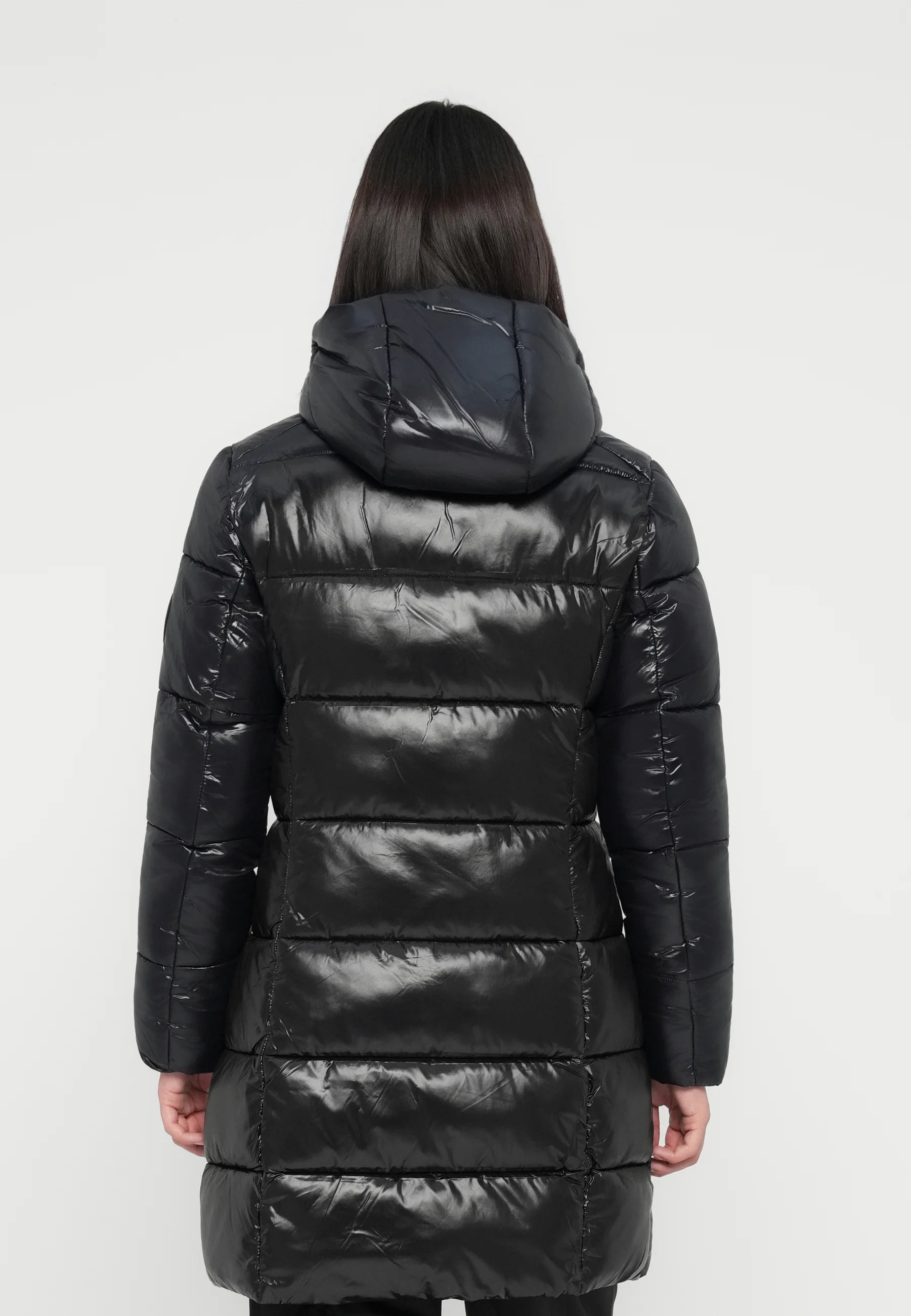 Piumino lungo Ines con cappuccio foderato che offre comfort avvolgente e protezione ottimale dal freddo. Il design lungo e la chiusura a cerniera a due direzioni garantiscono versatilità e praticità per affrontare le giornate più rigide.