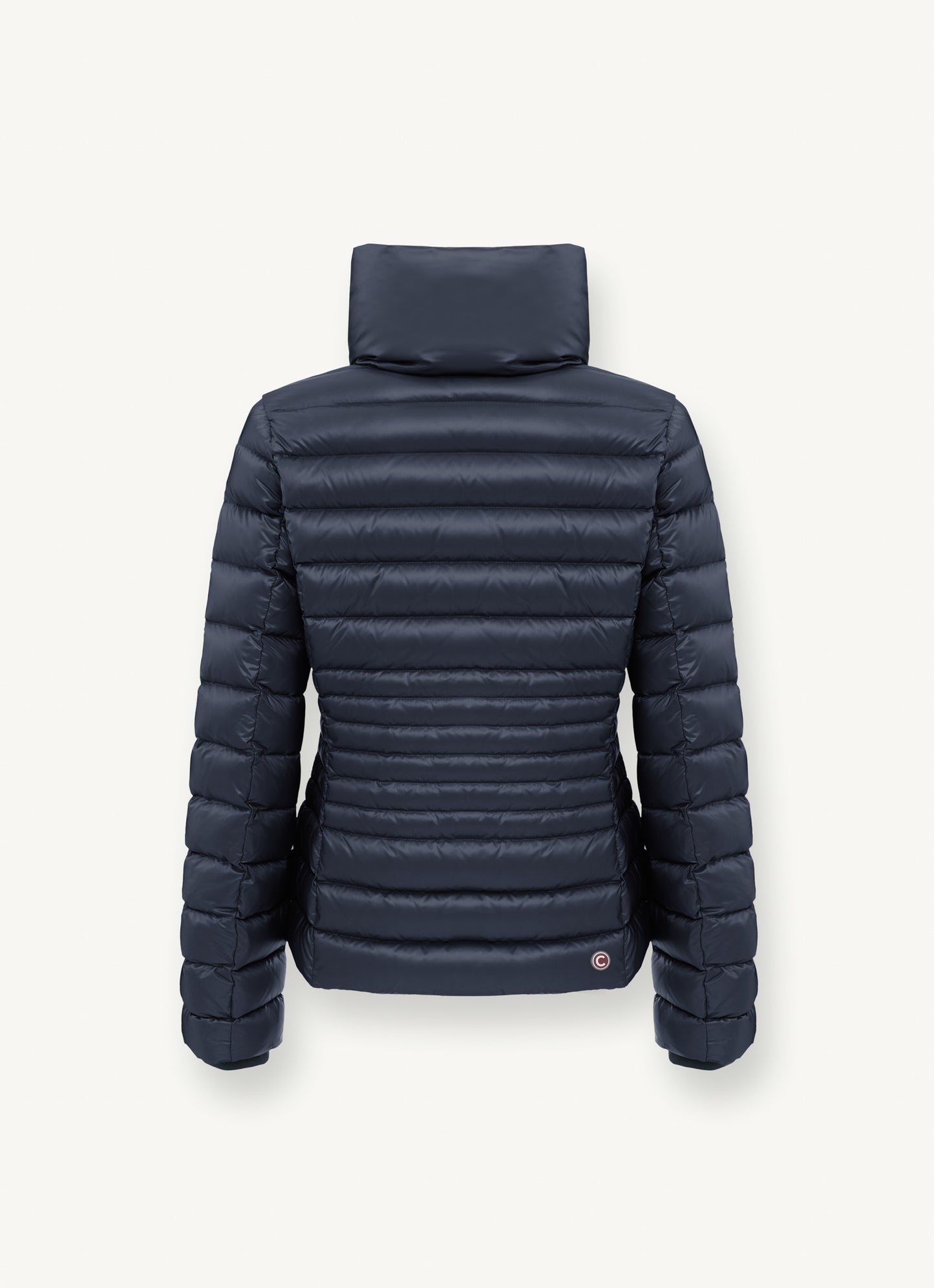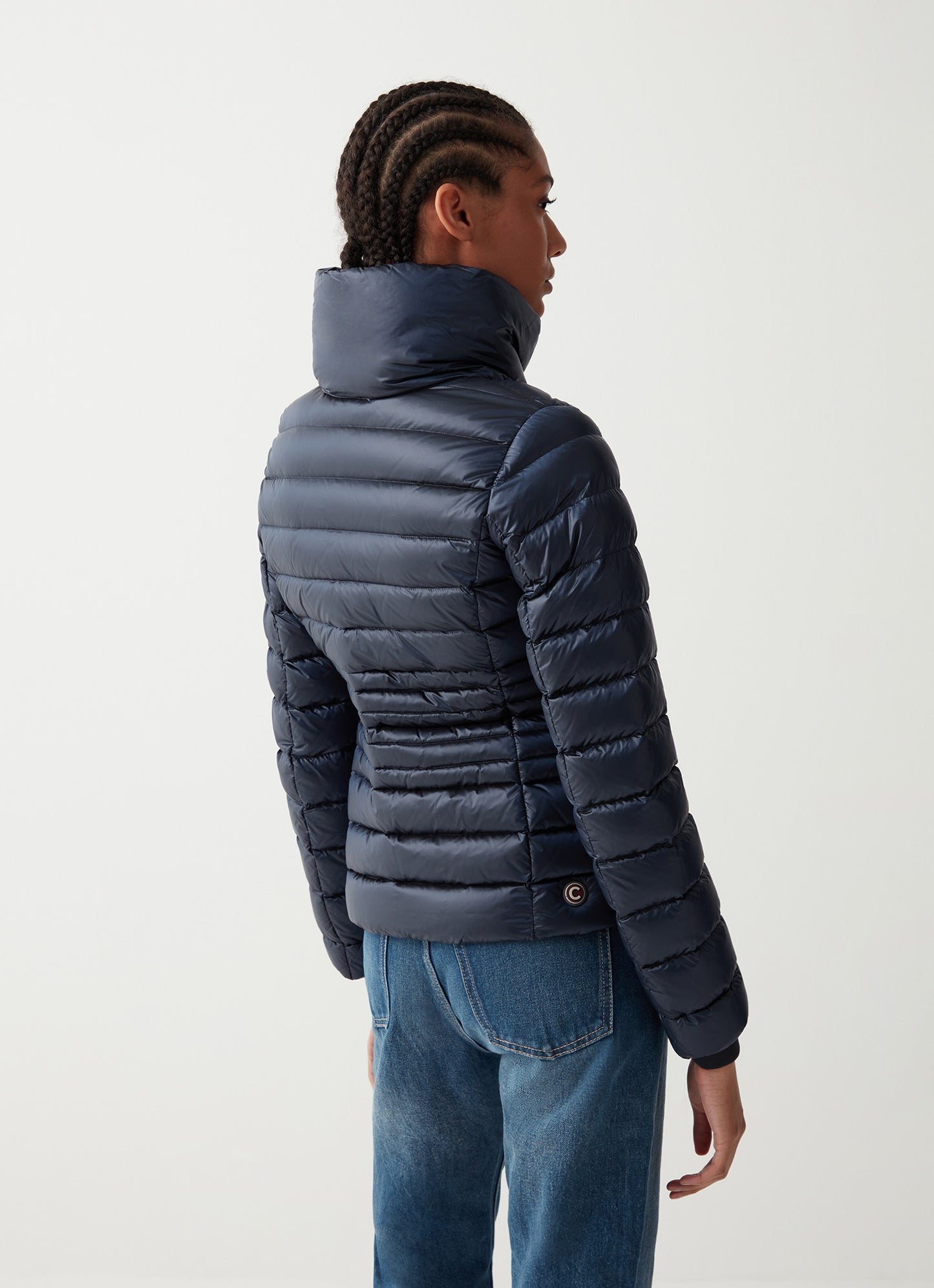 Piumino con polsi in maglia a costine, in nylon riciclato con effetto cangiante e trattamento idrorepellente. Vestibilità slim, chiusura con zip, tasche con zip, imbottitura in piuma naturale e logo sulla manica sinistra