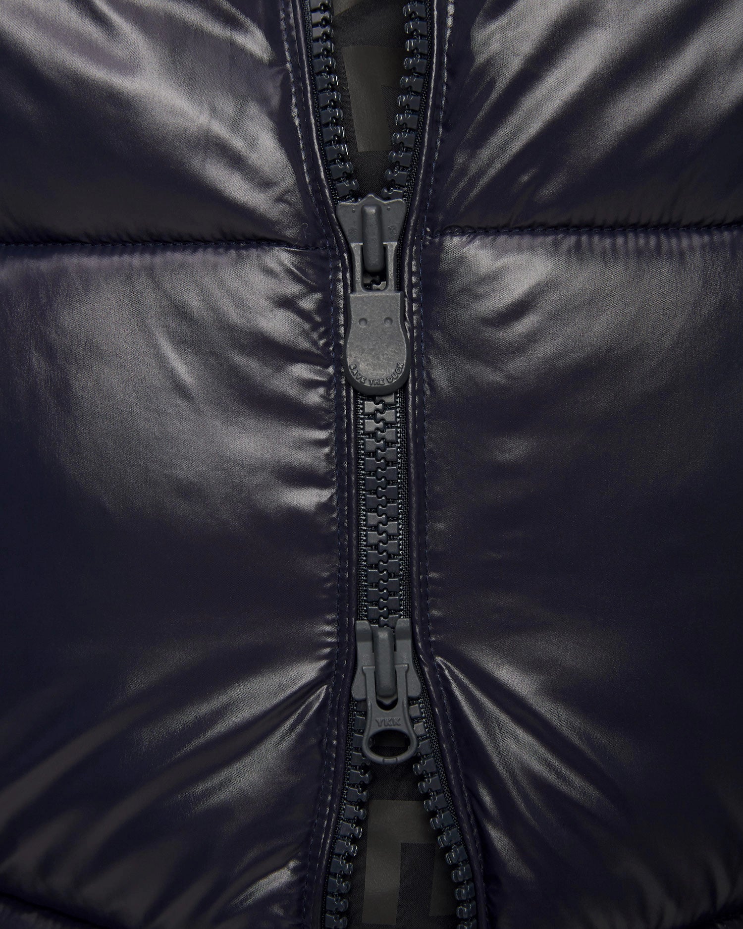 Realizzato in nylon di alta qualità con finitura metallica che conferisce un aspetto contemporaneo. L'imbottitura PLUMTECH garantisce calore ottimale rispettando il benessere animale, mentre il tessuto offre protezione dall'acqua e dal vento.