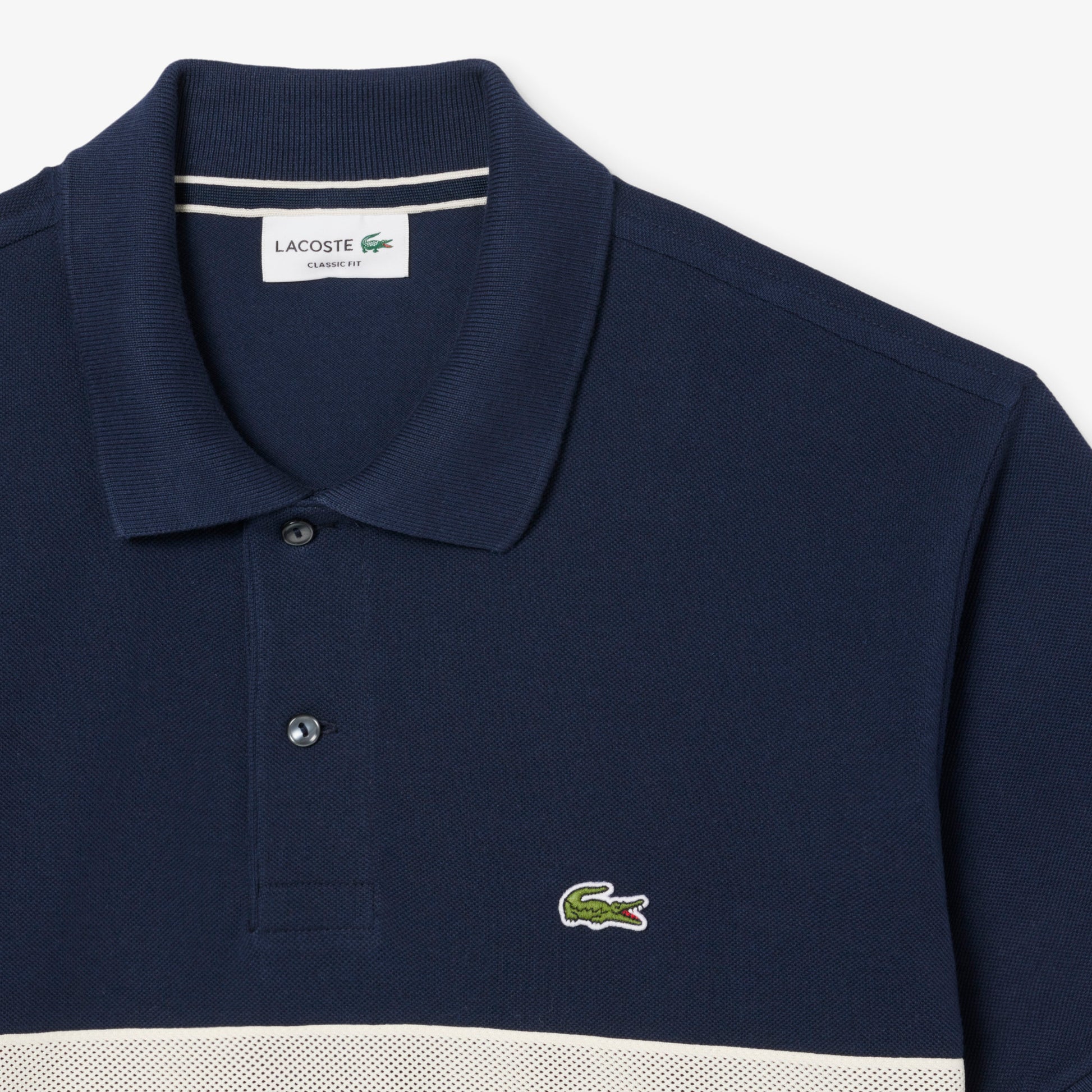 Questa polo doppia riga è una rilettura elegante e creativa di uno stile iconico di Lacoste, i pionieri della polo sin dal 1933. Realizzata in morbido e raffinato tessuto petit piqué, presenta bande centrali in mesh che aggiungono un tocco di sportswear. Con dettagli sofisticati come il coccodrillo ricamato, questa polo è perfetta per uno stile elegante e allo stesso tempo sportivo.