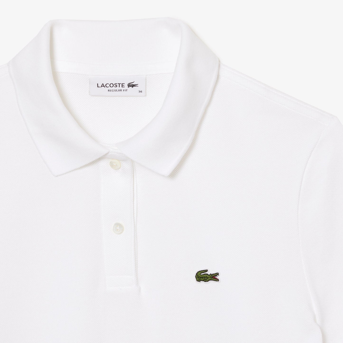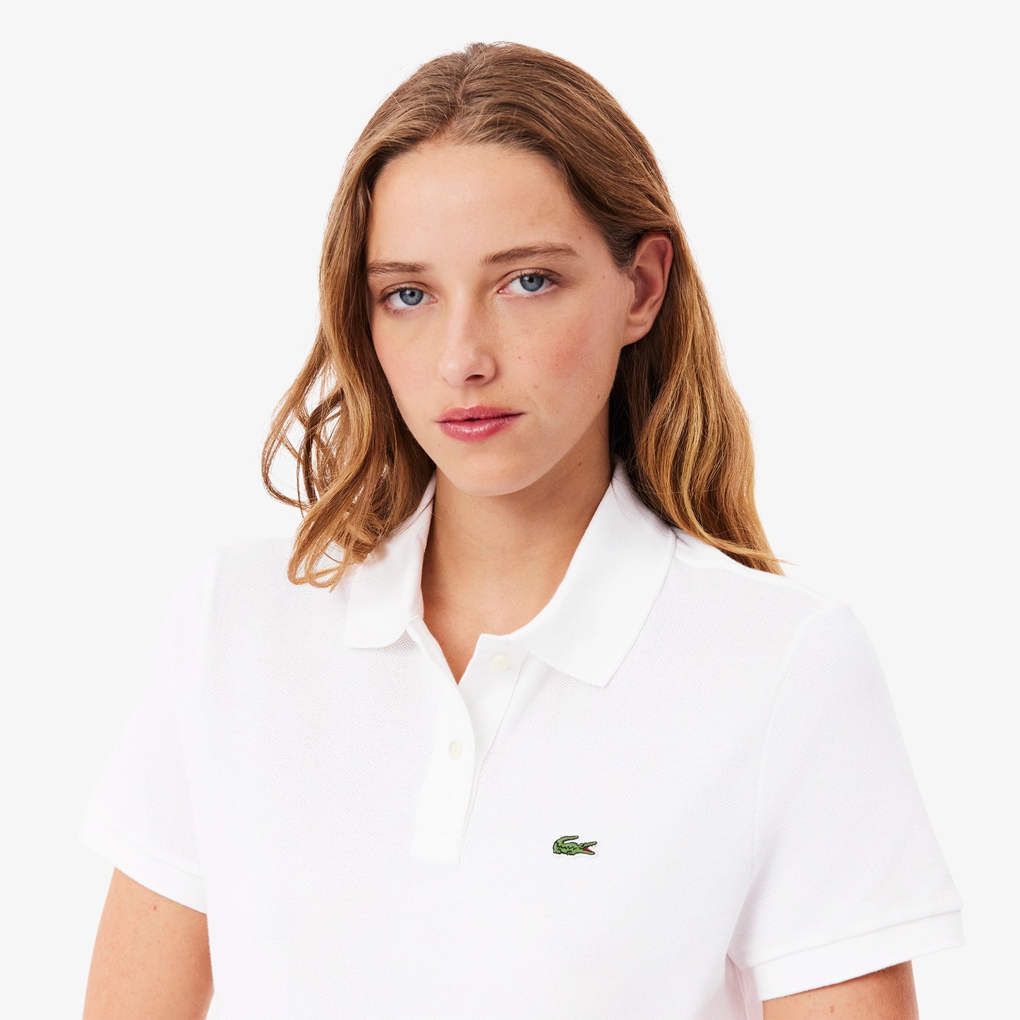 Realizzata in morbido piqué di cotone traspirante ed elastico, la polo piquet è la rivisitazione femminile dell'iconica polo di Lacoste. Con colletto e polsini a costine, finiture in bottoni di madreperla e il coccodrillo verde ricamato sul petto, questo capo è perfetto per un'elegante visione contemporanea. Scegli una taglia più grande della tua solita per una vestibilità comoda.