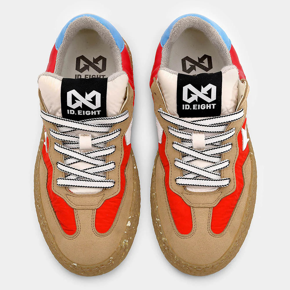 Una sneaker che celebra il rosso paprika vivace attraverso tonalità piccanti impossibili da ignorare. Realizzate con poliestere riciclato idrorepellente e BioVeg da mais, queste sneakers Uriduri Hot Paprika rappresentano l'attitudine street con consapevolezza ambientale, perfette per chi cerca calzature che esprimono personalità attraverso colori che caratterizzano subito il look e materiali sostenibili a basso impatto.