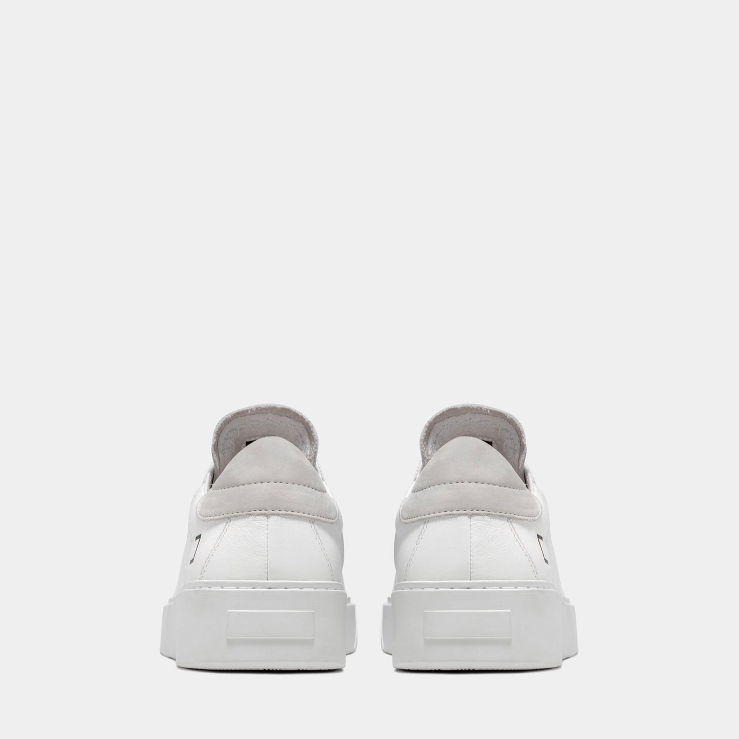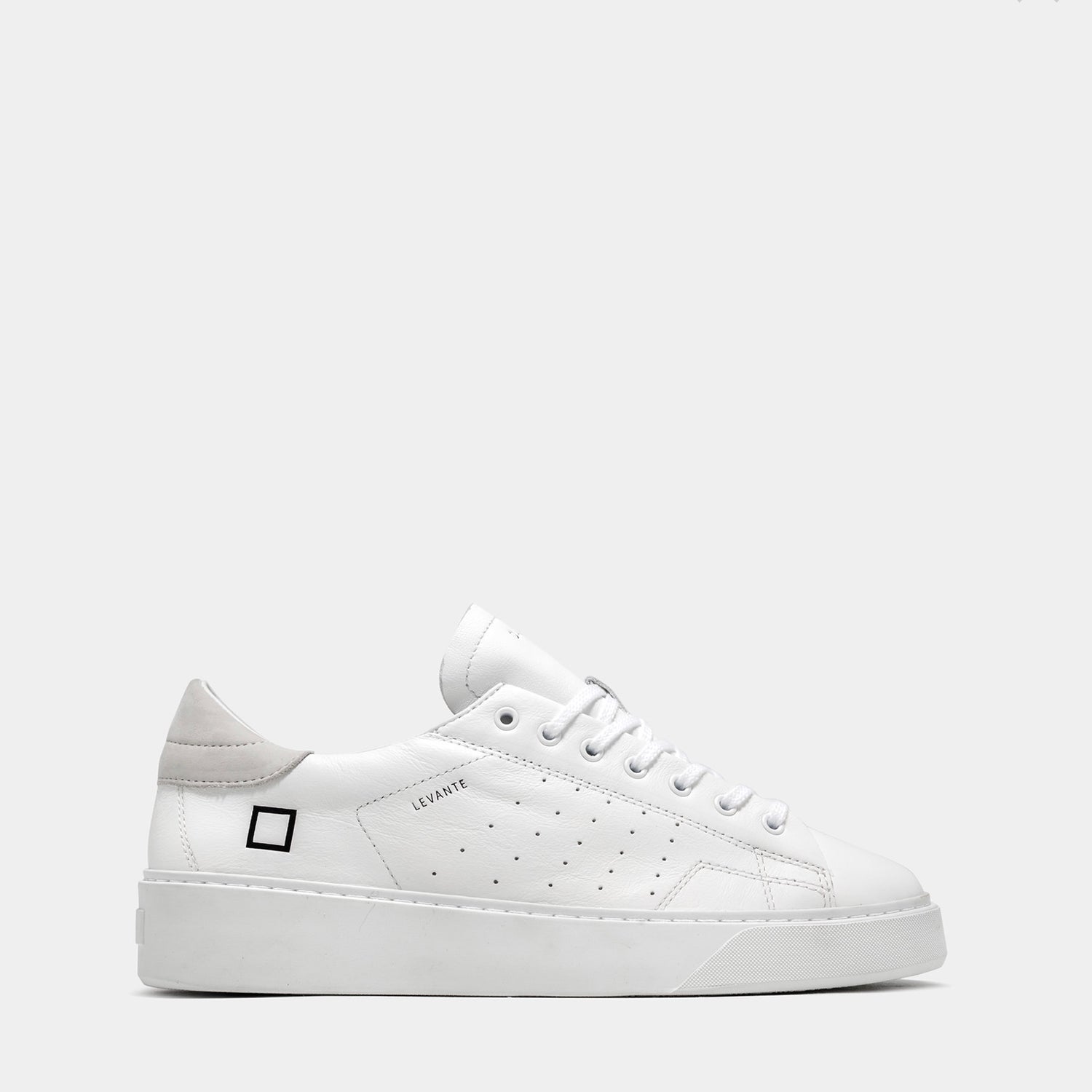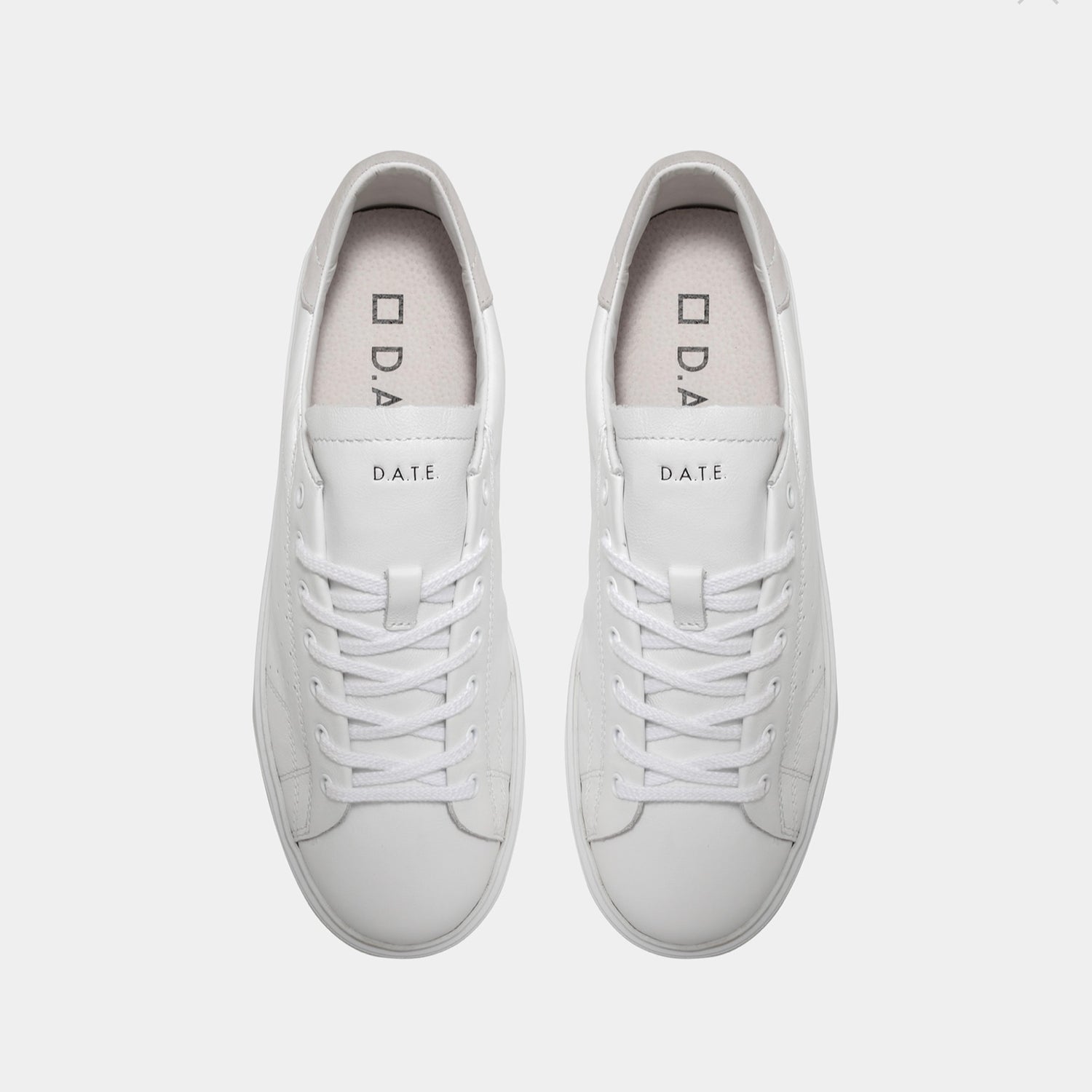 Cod.M361-LV-CA-WH Scarpe basse in pelle con impressa sulla linguetta la scritta D.A.T.E., lacci in cotone, logo e modello impressi a lato. Talloncino posteriore in nabuk bianco, fodera in spugna e pelle bianca. Suola rialzata di 2.5 cm per un maggiore comfort. Pellami e materiali made in Italy