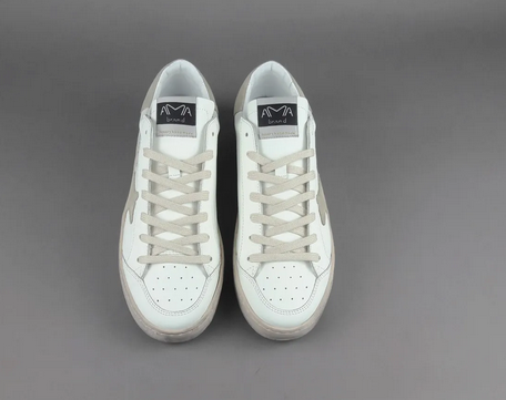 Modello: Slam | Tomaia: Pelle bianca + camoscio talpa | Made in Italy | Ama Brand Primavera/Estate 2026