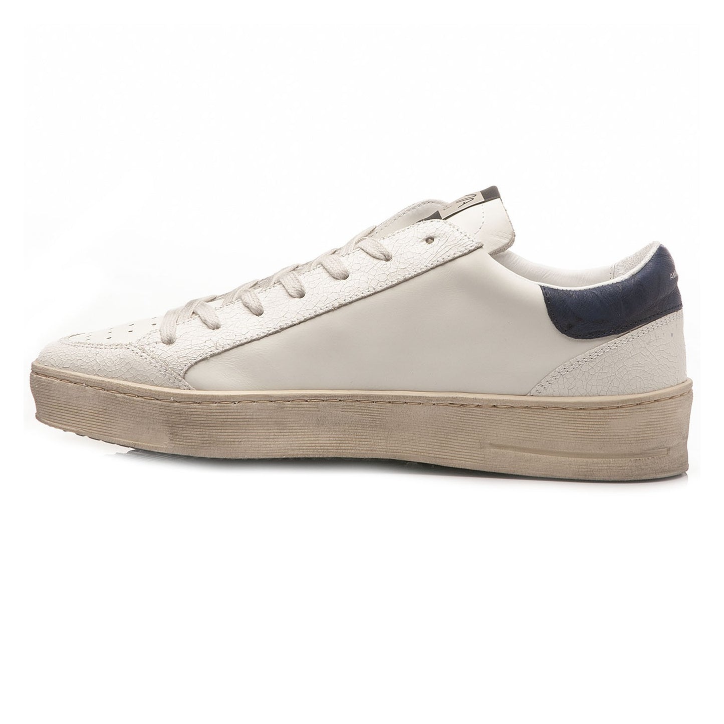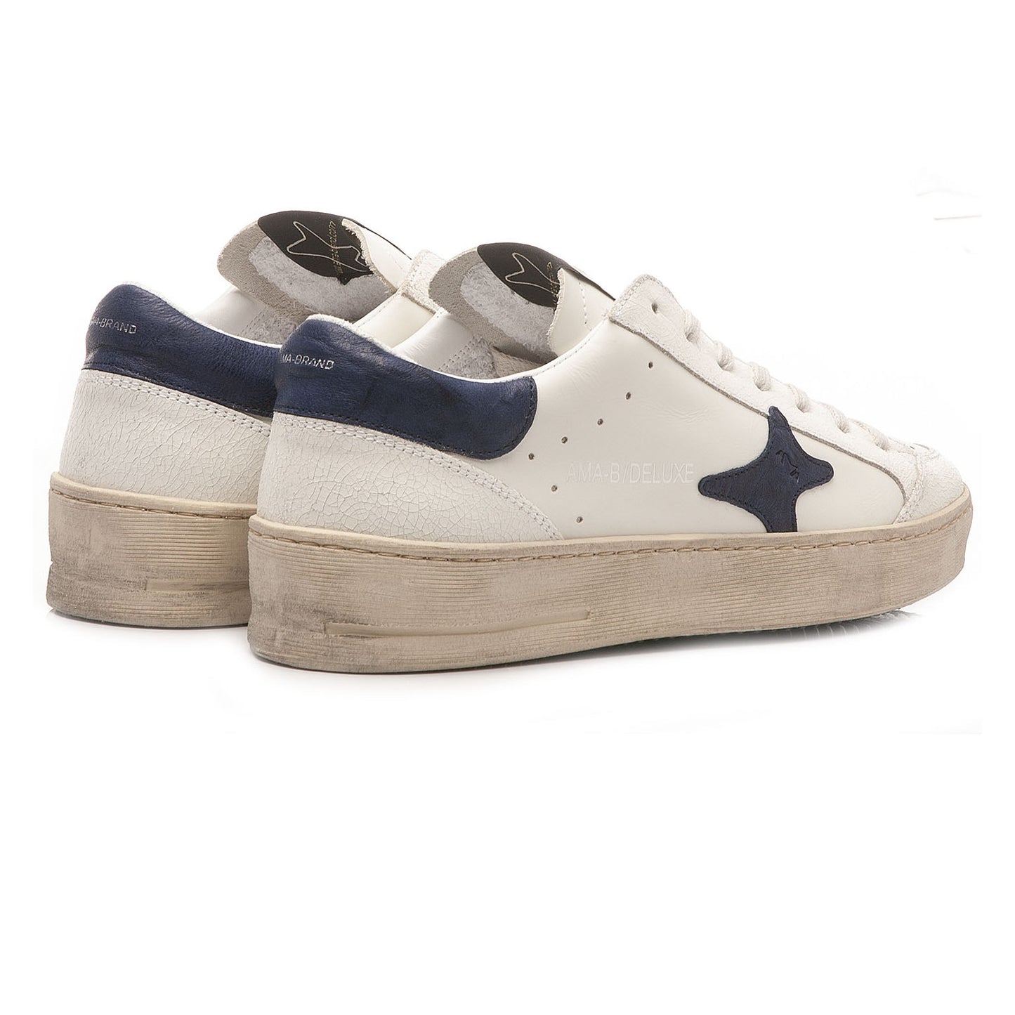 Sneakers in pelle. Colore bianco con dettaglio e tallonetta in pelle blu. Fondo in gomma
