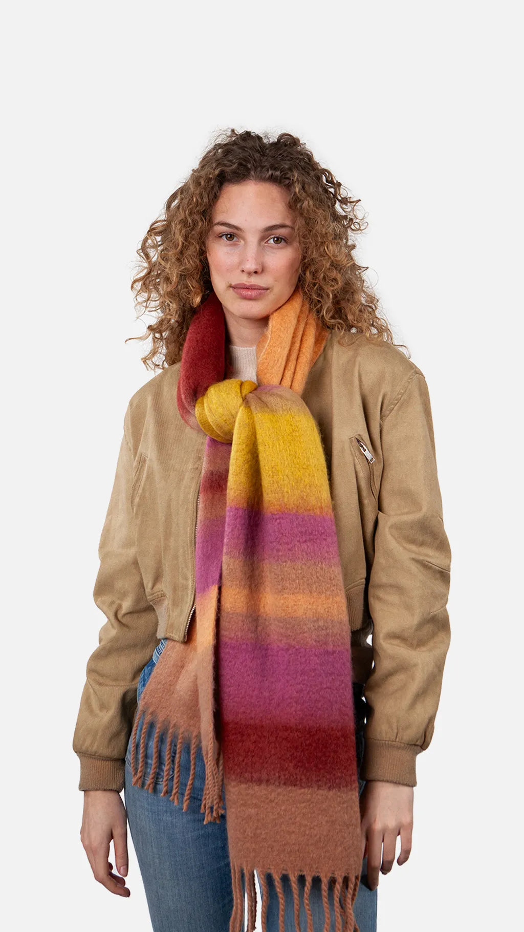 Aggiungi un tocco di colore e divertimento al tuo look con la nostra sciarpa righe da donna. Realizzata al 54% in poliestere riciclato, è anche ecologica. La morbidezza e il calore di questo prodotto ti faranno sentire avvolto in una nuvola. Con le sue dimensioni di 200 x 30 cm, è perfetta per ogni occasione.