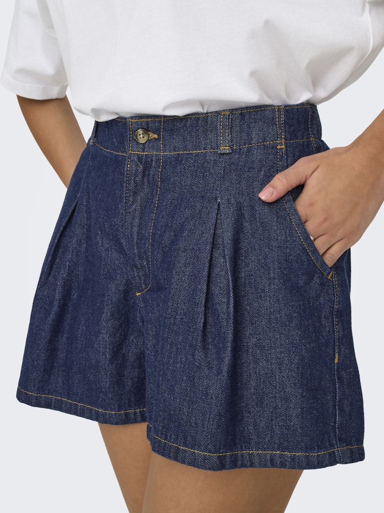 Questi short denim larghi uniscono comfort e stile con una vestibilità loose fit perfetta per ogni occasione. Dotati di chiusura con bottone e zip, passanti per cintura e una fascia elasticizzata in vita, offrono libertà di movimento e un tocco di praticità. Ideali per un look casual e spensierato, sono un must-have versatile da indossare corti o lunghi, chiari o scuri, sempre con un tocco di personalità.