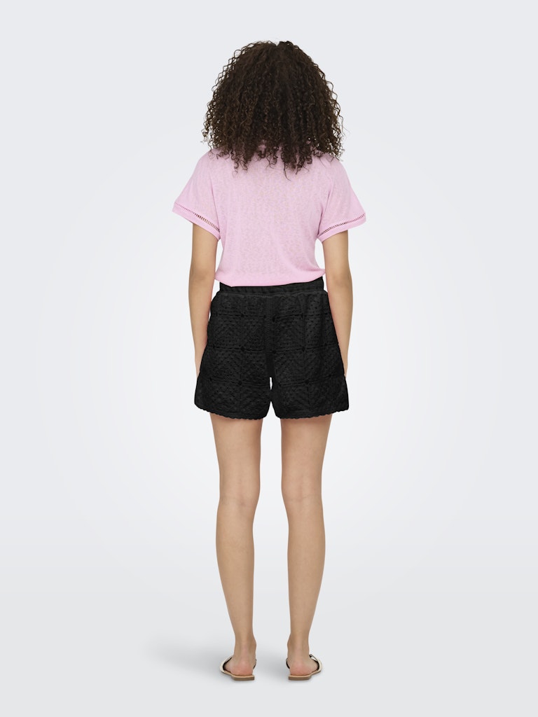 Short macramé dal design fresco e contemporaneo, perfetto per un look giovane e dinamico. Realizzato con una lavorazione a crochet che unisce stile artigianale e comfort, è ideale per chi desidera un capo versatile e alla moda, adatto a diverse occasioni casual.