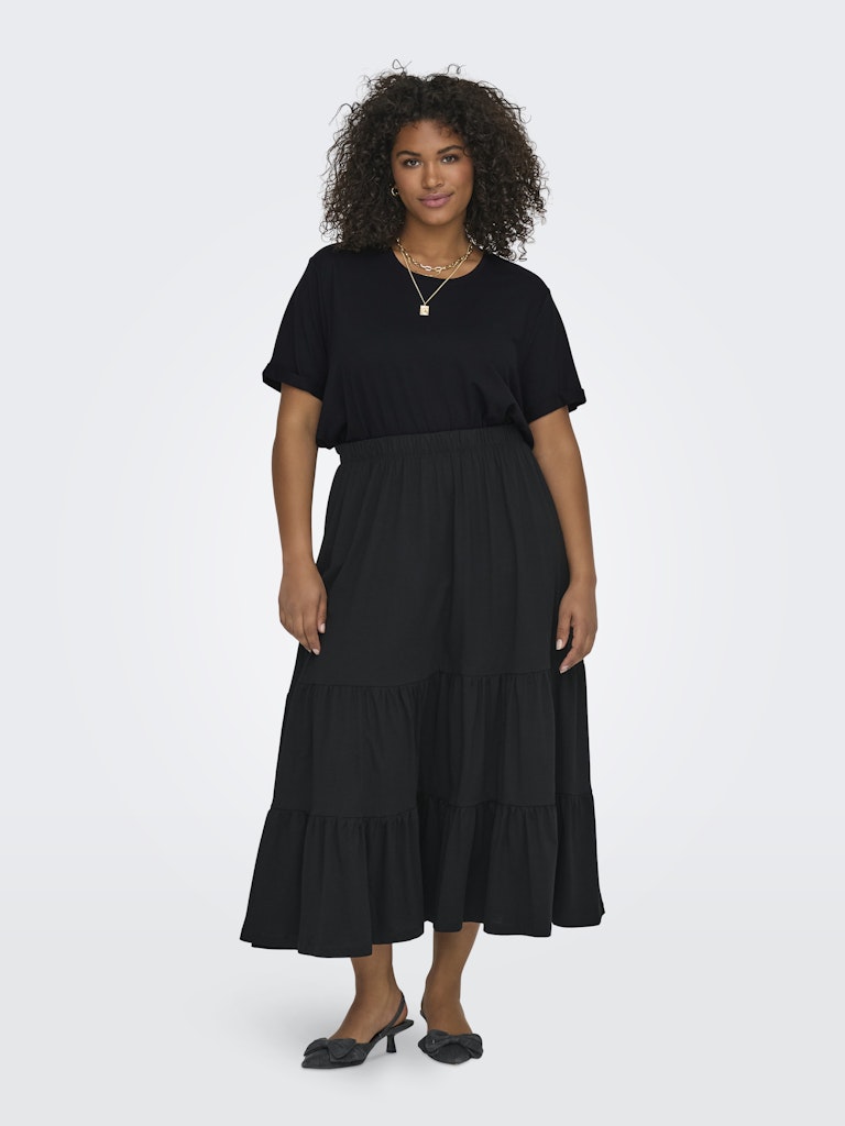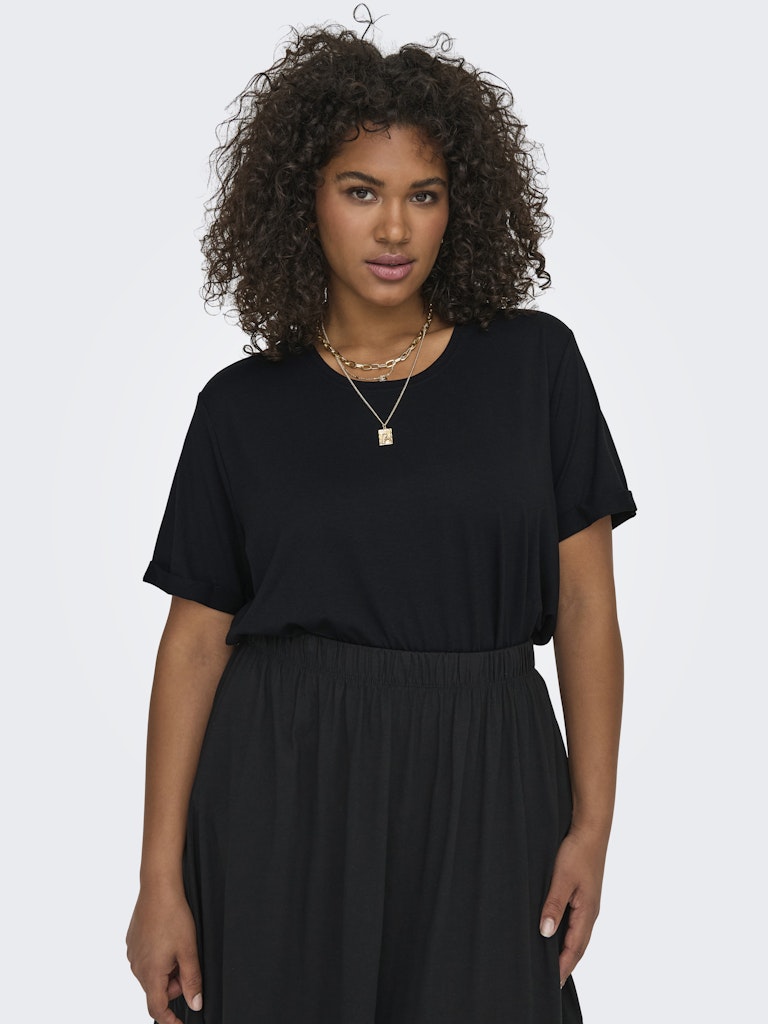T-shirt essenziale CARMAKOMA che unisce comfort e versatilità in un capo fondamentale per il guardaroba di ogni donna. Perfetta per creare look casual o da abbinare a capi più eleganti, questa t-shirt è l'alleata ideale per ogni giorno.