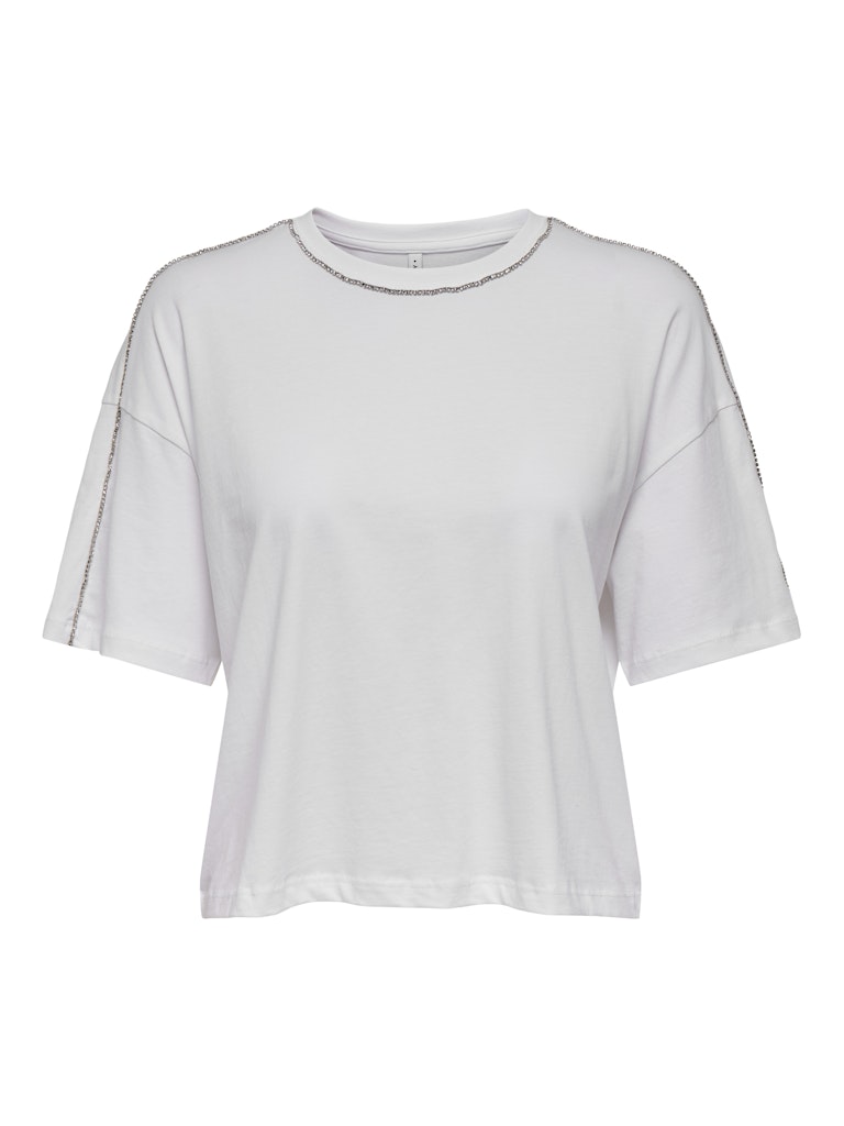 Questa T-shirt crop perline unisce stile e sostenibilità con un tocco giocoso. Il collo paricollo garantisce comfort e vestibilità perfetta, mentre il tessuto contiene almeno il 50% di cotone biologico, coltivato senza sostanze chimiche dannose. Indossala per un look fresco e responsabile, rispettando la natura senza rinunciare al divertimento.
