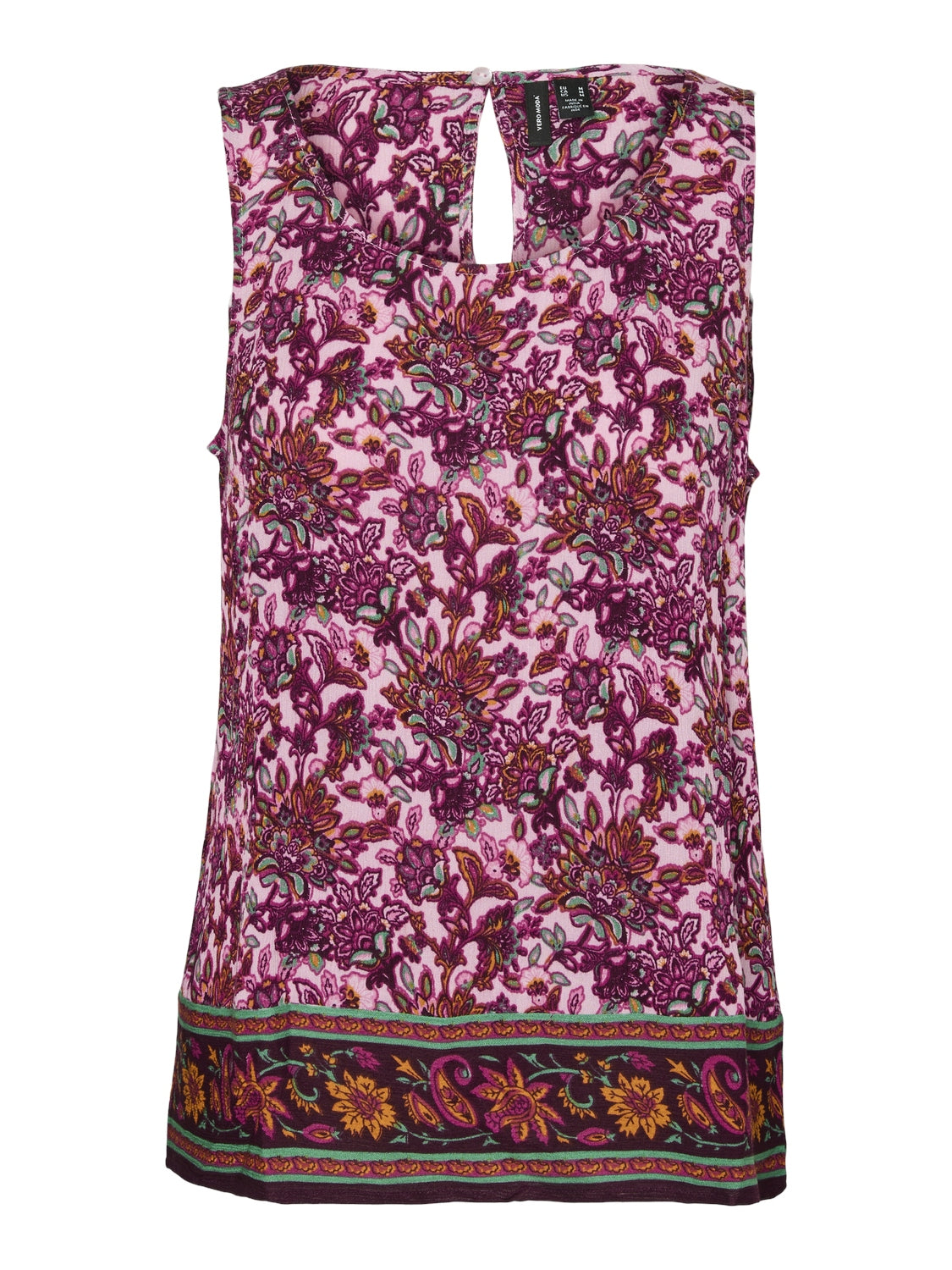 Questo top smanicato con girocollo e chiusura con bottoni presenta una stampa ripetuta su tutta la superficie, che aggiunge un tocco di fantasia al tuo look. La vestibilità regolare garantisce il massimo comfort e ti permette di muoverti con libertà. Aggiungi un tocco di originalità al tuo guardaroba con questo T-shirt smanicato. È impossibile non trovare dei capi basic in ogni guardaroba. I nostri top basic aiutano a mettere insieme un outfit, e questo top non fa eccezione. Indossalo con una shacket sopra, un paio di jeans mom rilassati e degli stivali chunky per un look cool e rilassato da tutti i giorni.