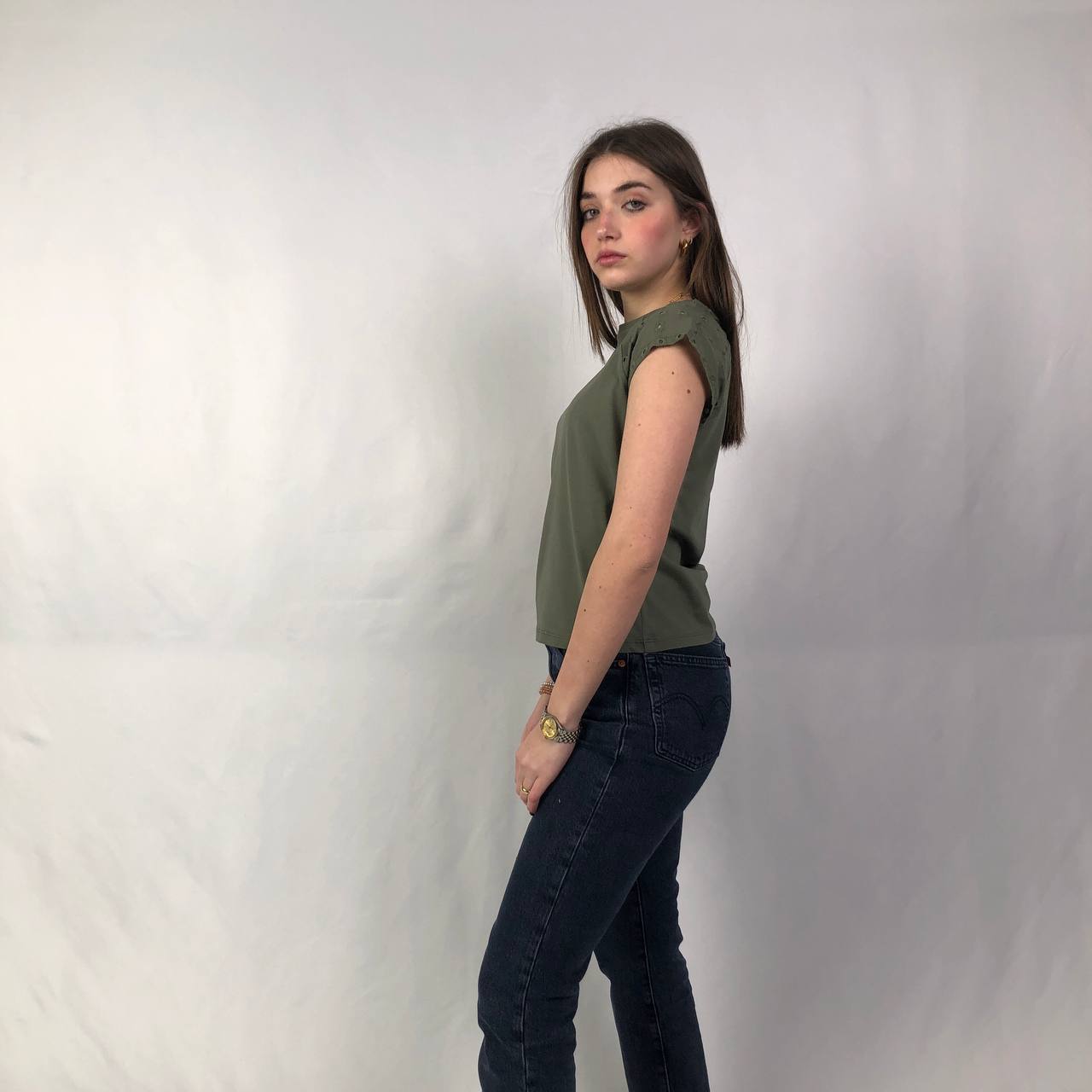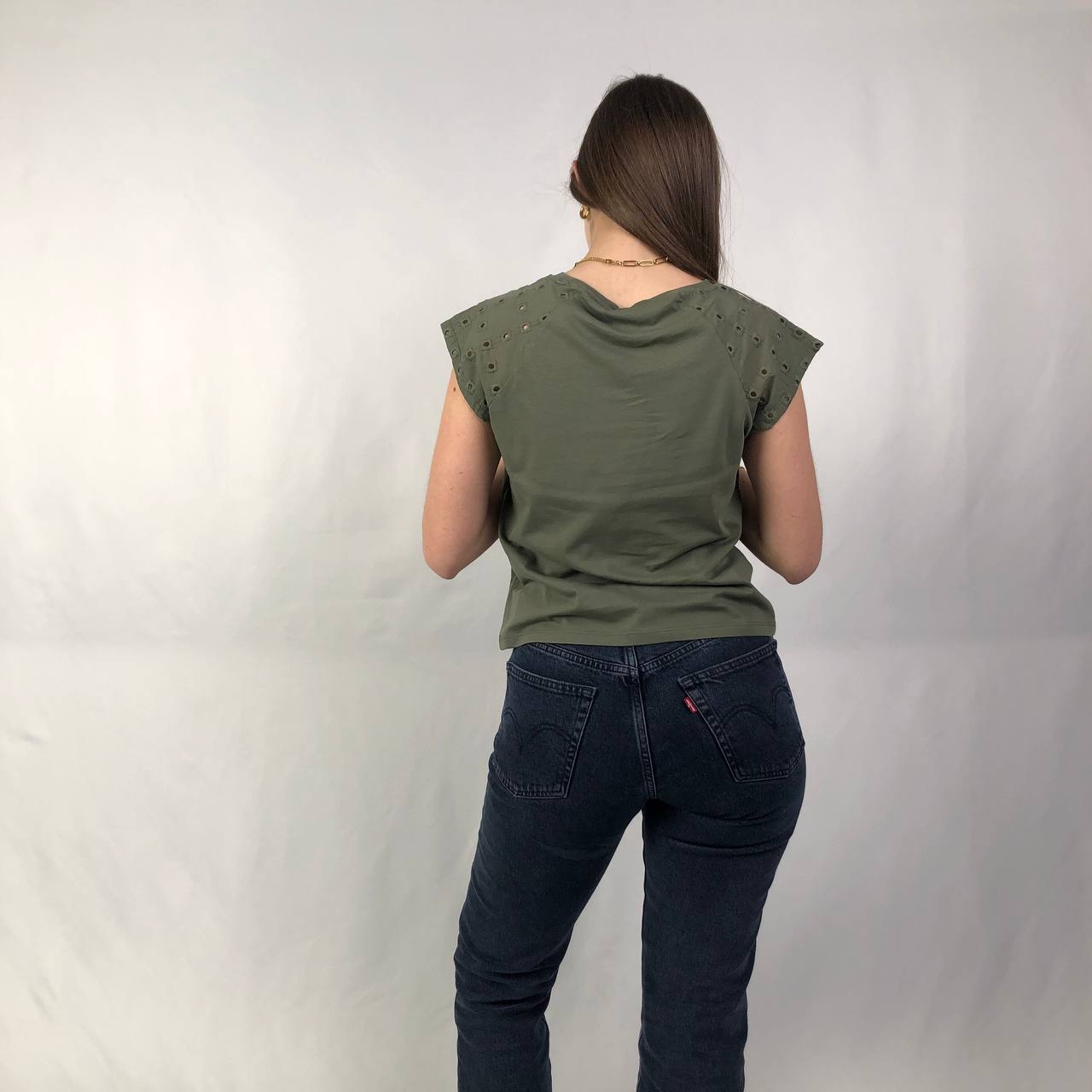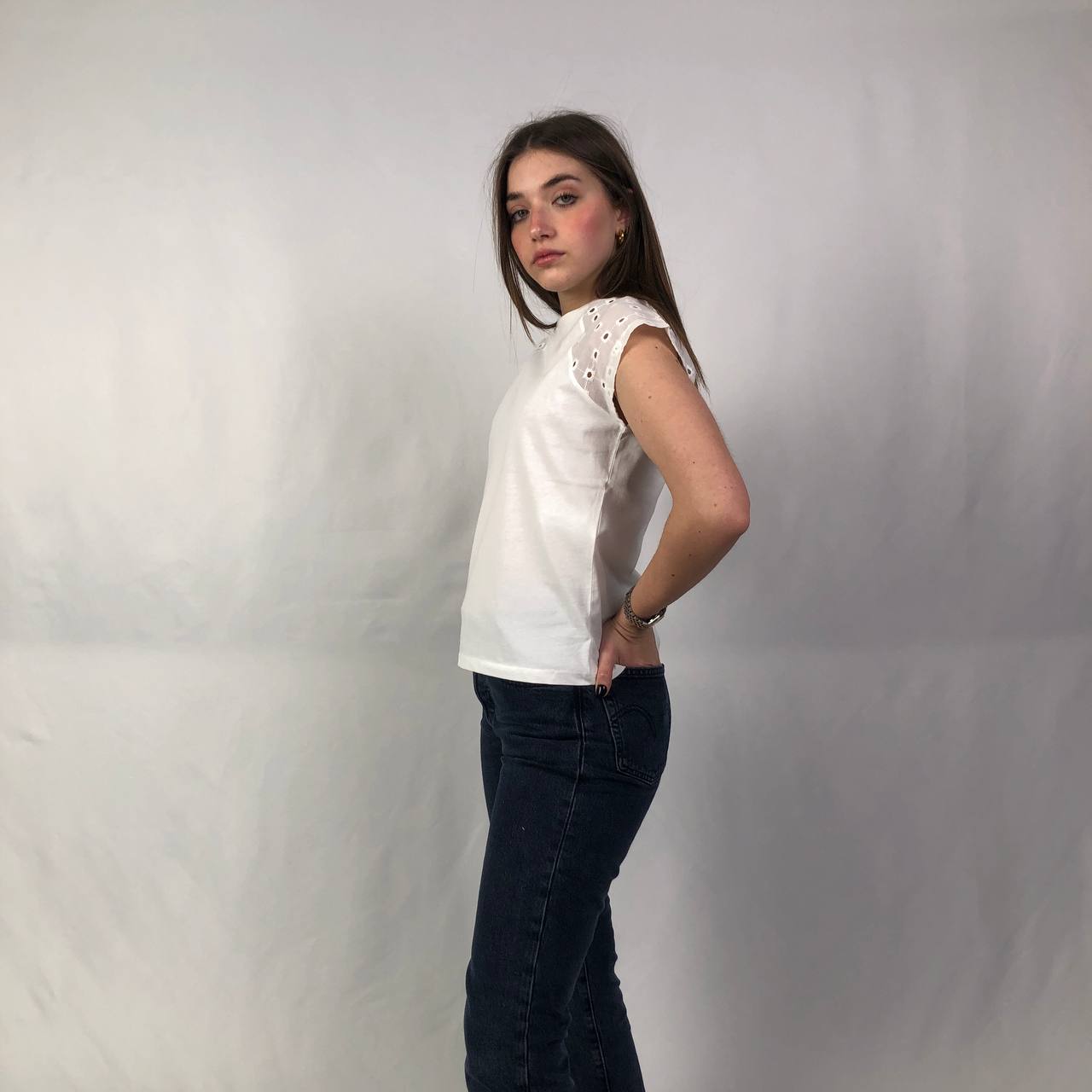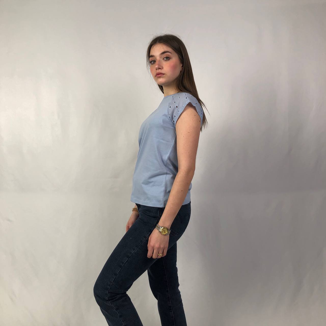 Cod.SEDE T-shirt in jersey di cotone con maniche raglan in Sangallo, scollo rotondo, linea dritta.
