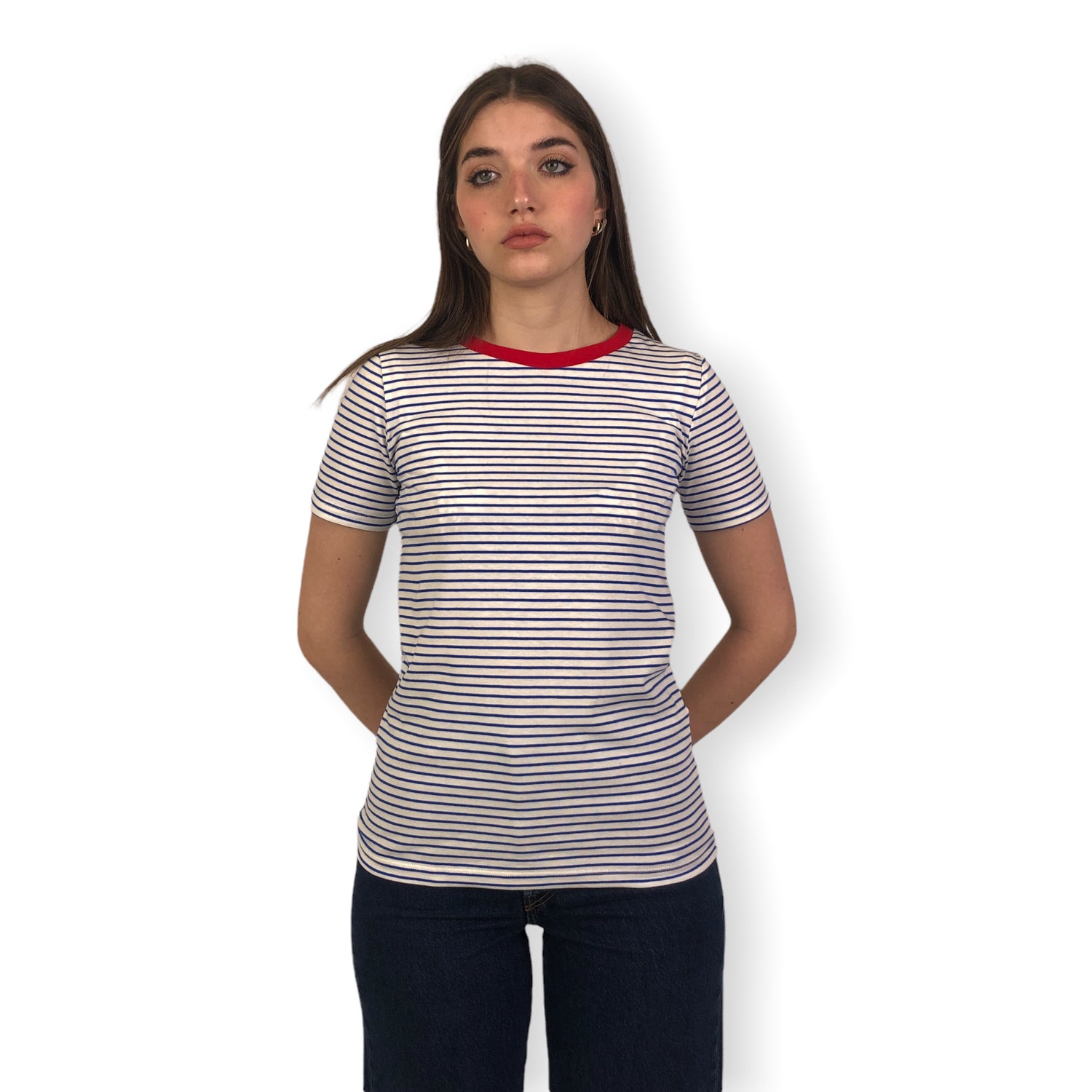 Cod.EM7832 T-shirt a mezze maniche con girocollo in contrasto