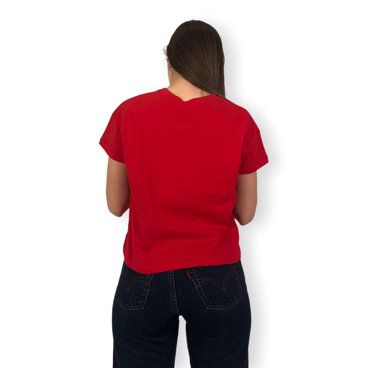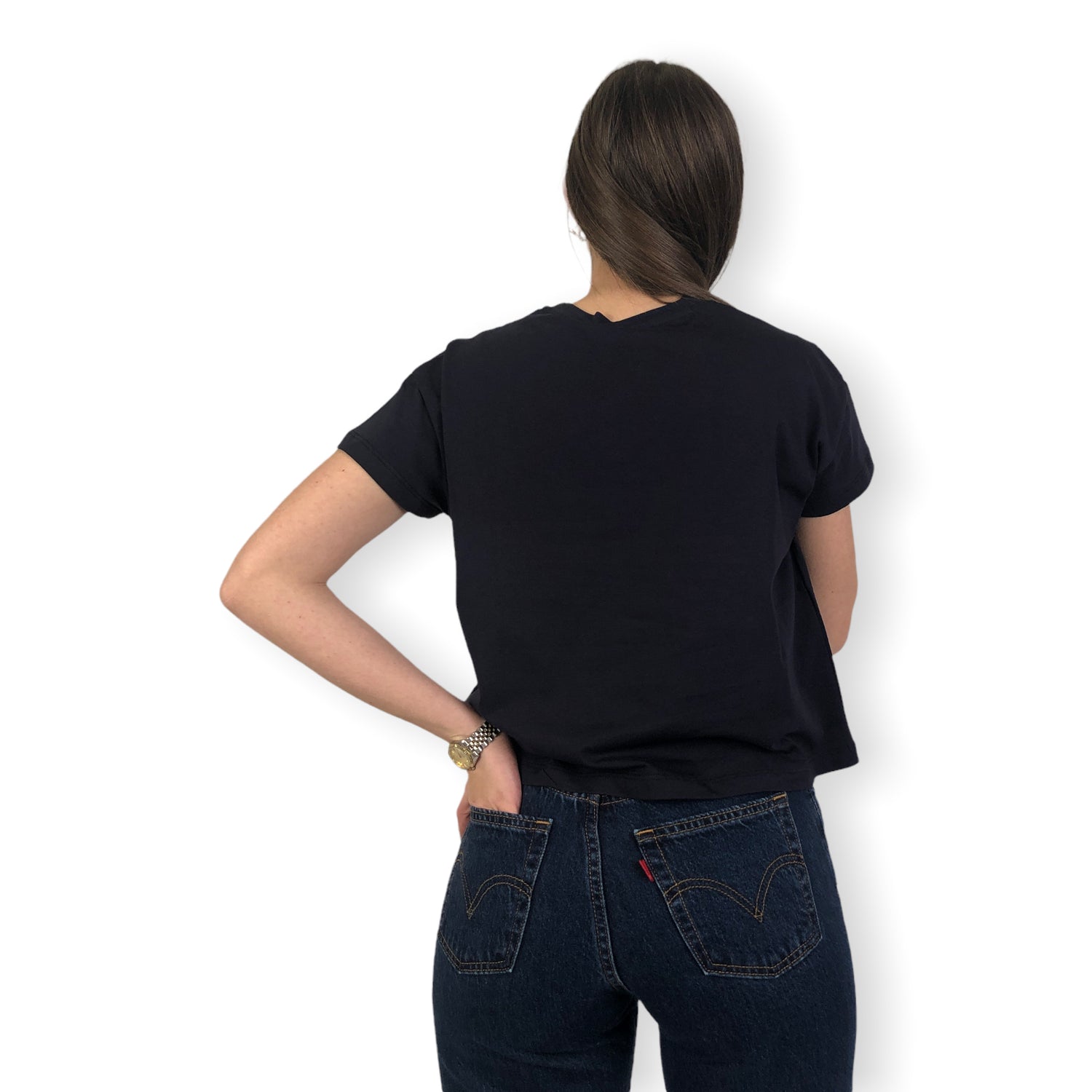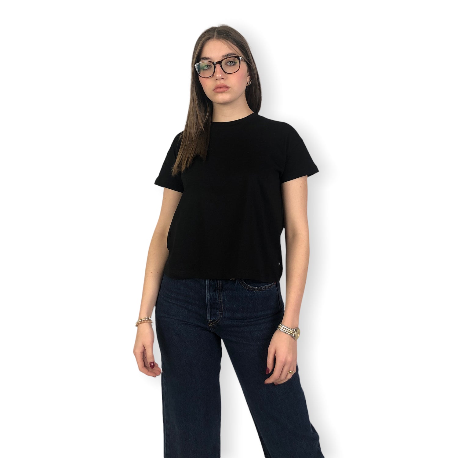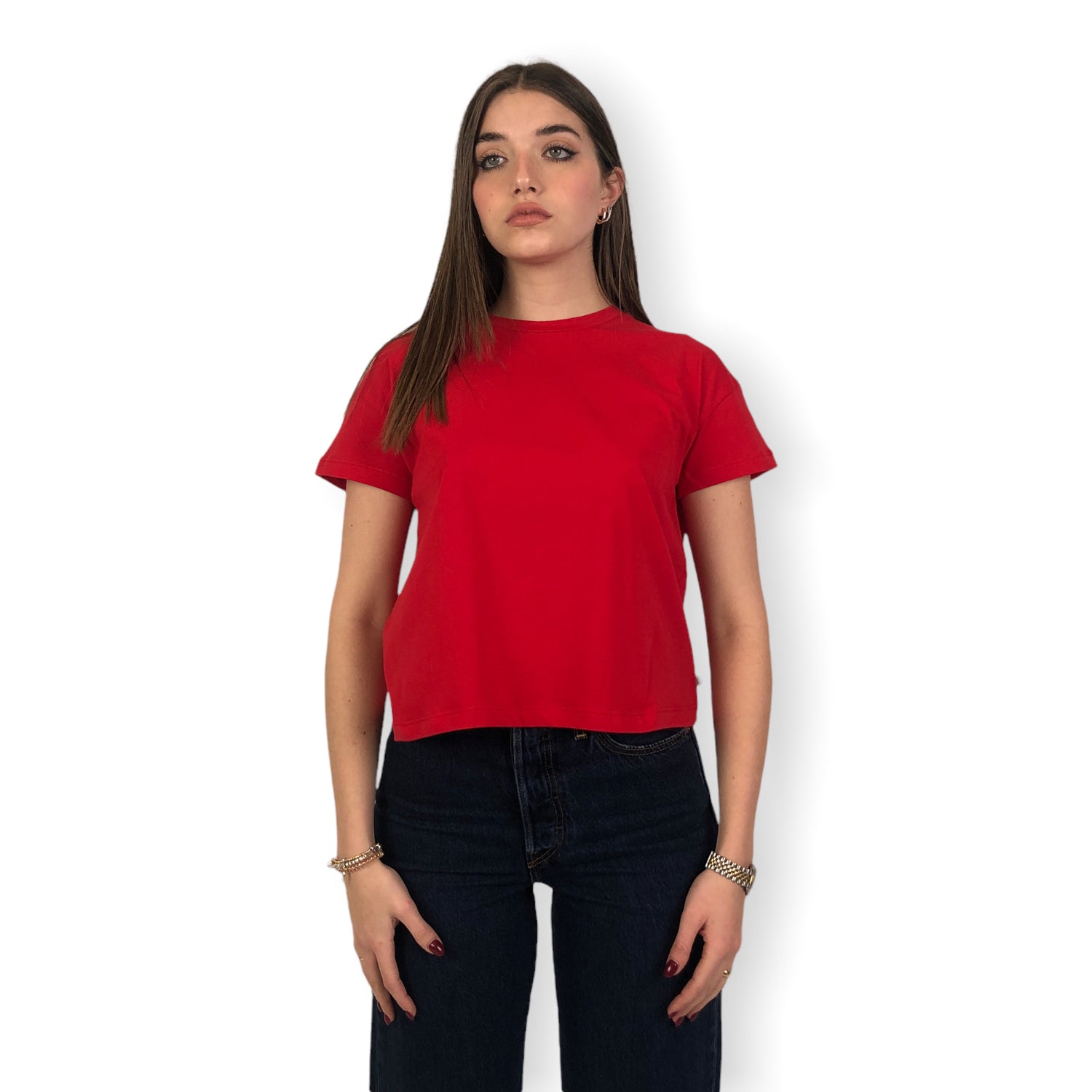 Cod.EM7784 T-shirt a scatola con mezze maniche in puro cotone con logo in tessuto cucito sul fianco sinistro