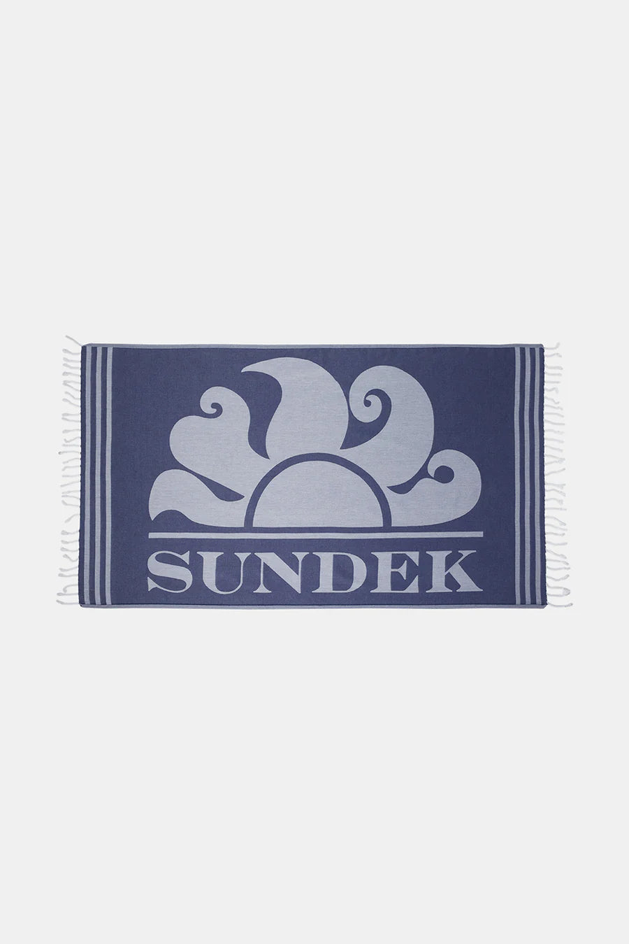 Cod.AM401ATC-1000 Telo mare in puro cotone con logo a contrasto e frange